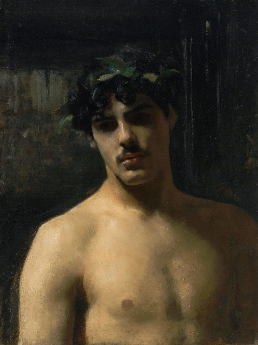 Man Wearing Laurels, 1874–1880. John Singer Sargent. Oil on canvas. Los Angeles County Museum of Art, Mary D. Keeler Bequest.